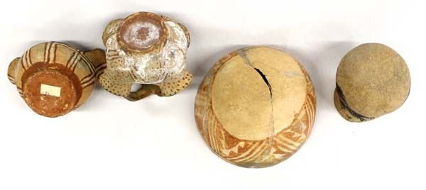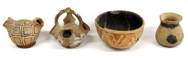 4 Pieces of PreColumbian Pottery Replicas, largest measures 4.5'' x 3'', each piece has damage