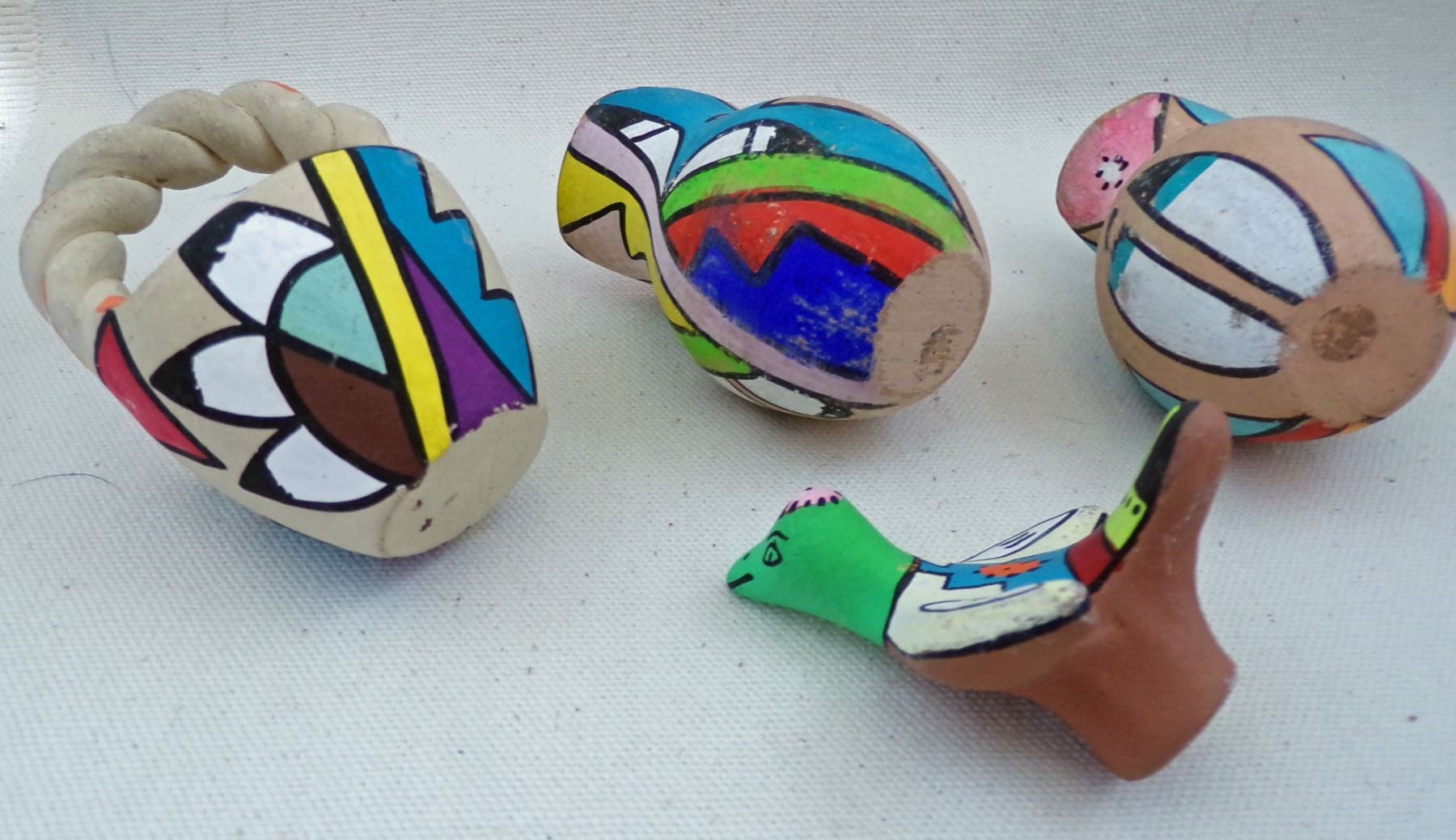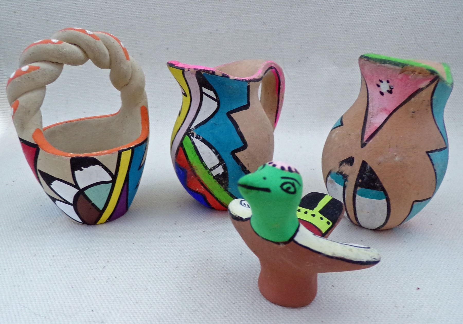 4 Pieces of Native American Tesuque and Jemez Poster Paint Pottery, largest measures 3''H