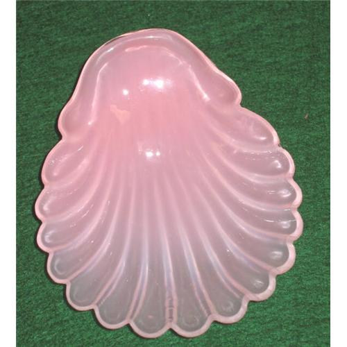 Very pretty pink opalescent glass shell serving dishes. Luminous and delicately colored. One dish has a minor hairline crack, but is been restored and is sound. Please email with any questions. Additional photos availabe for serious inquiries.