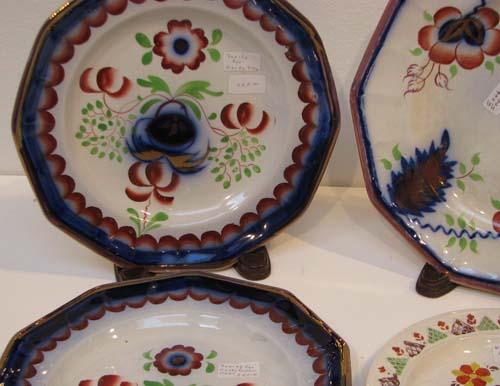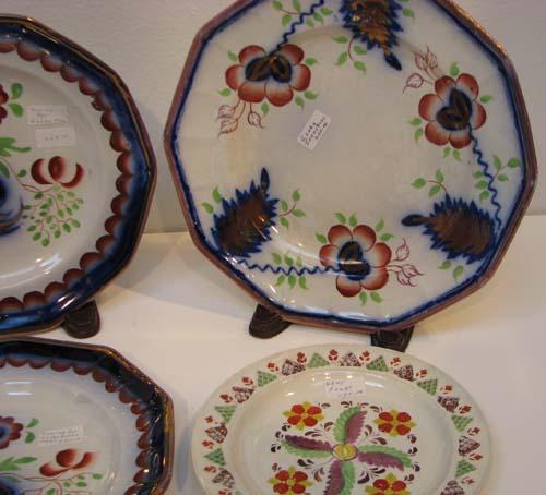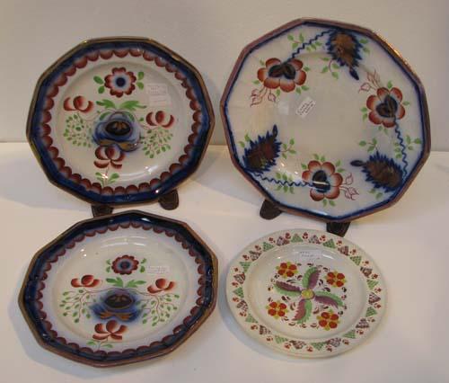 Title: 4 Plates: 2 Seeing Eye Gaudy Ironstone, Pearl White Gaudy Ironstone and Lustreware