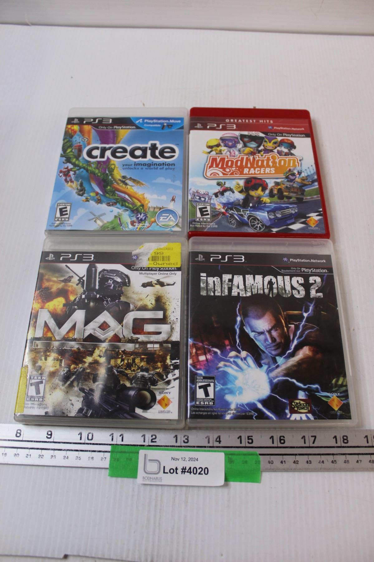 (4) PlayStation 3 Video Games: Create, ModNation, Infamous, MAG