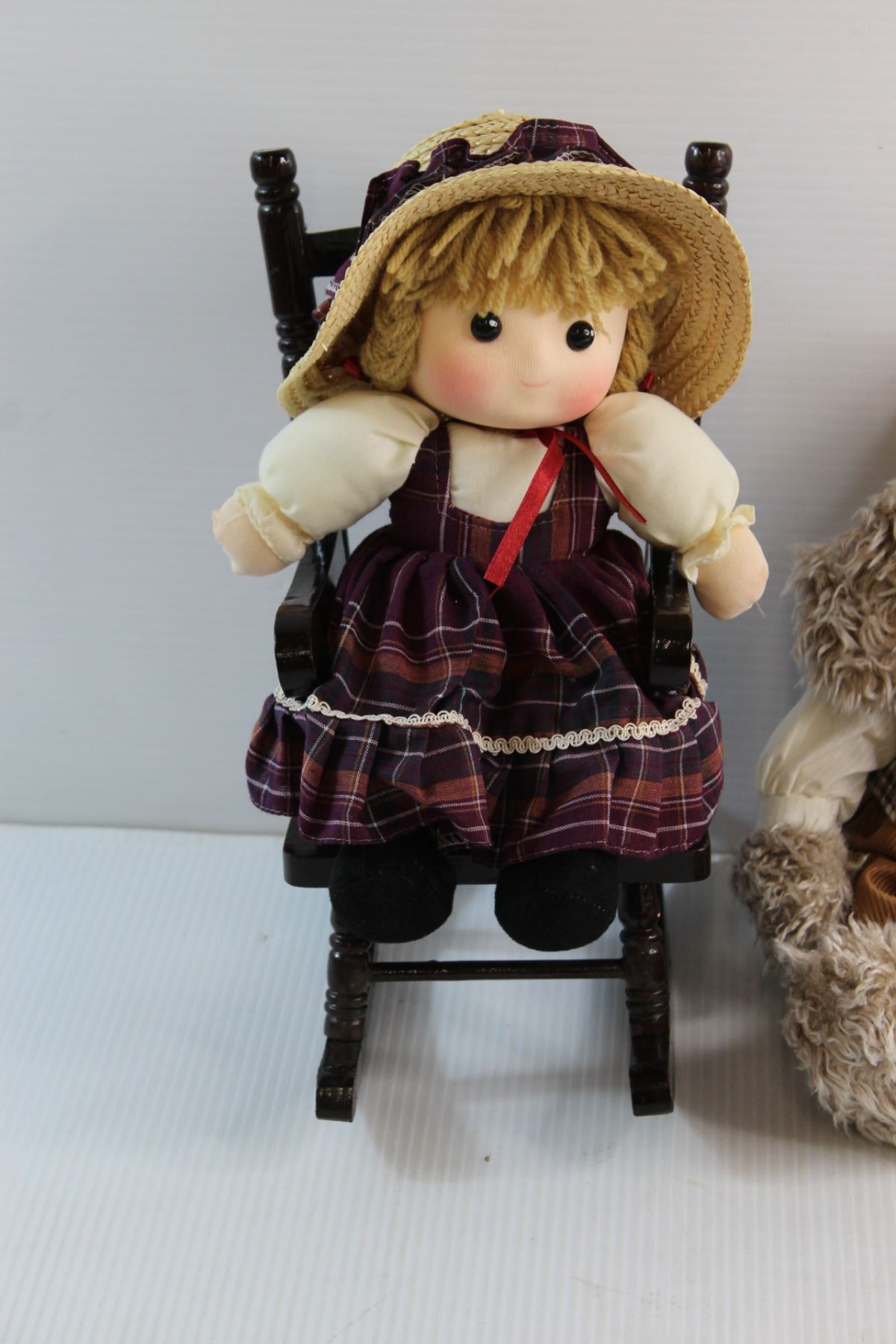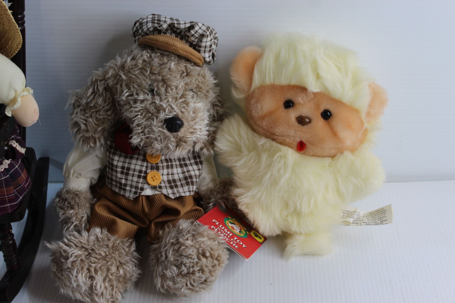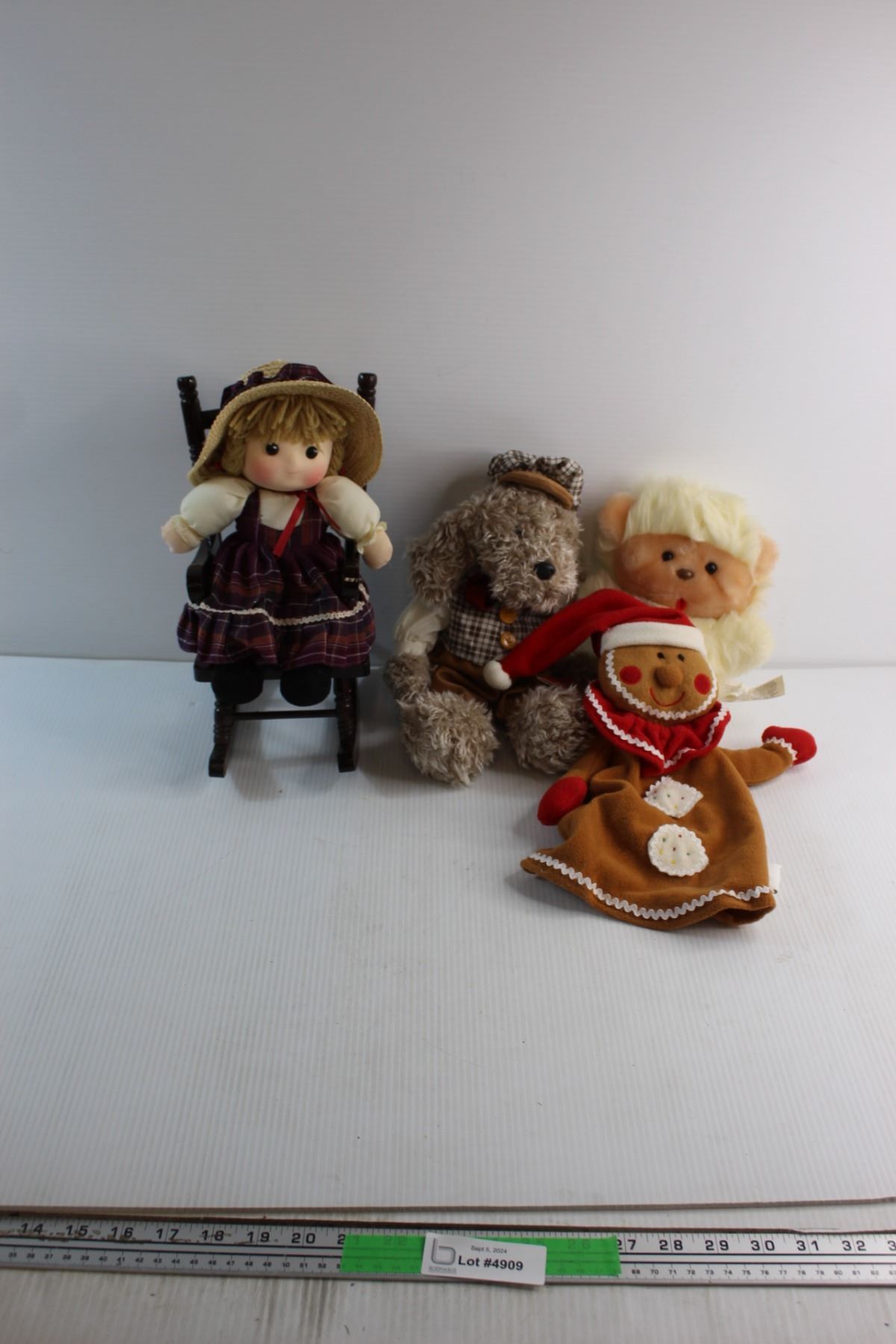 (4) Plush Toys - Dog, Monkey and Doll in a Rocking Chair