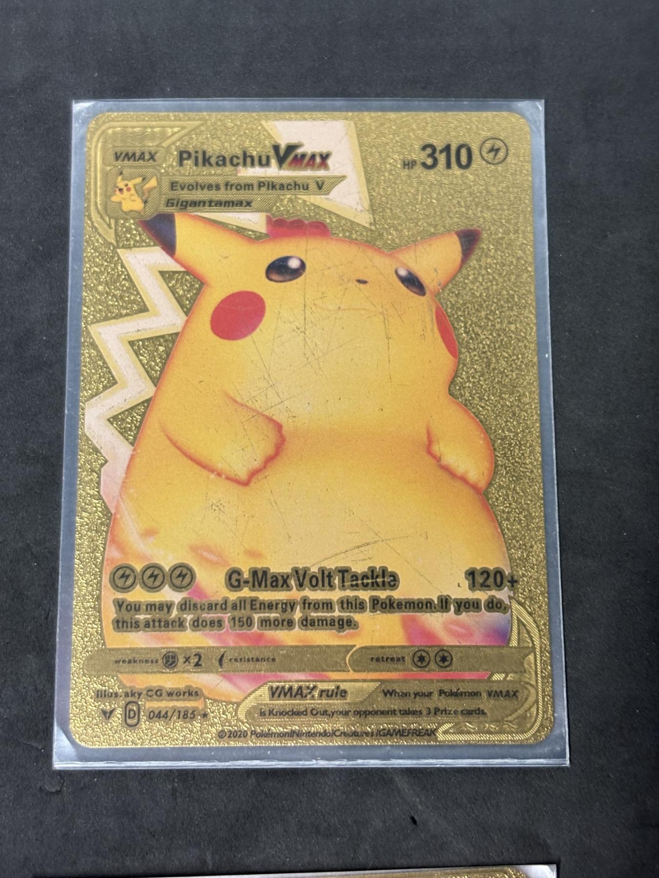 4 Pokémon Gold Trading Cards - Pikachu Vmax 044/185 Rare (2) Holo - Special Delivery Pikachu SWSH074 Holo - Pikachu Rare 075/073