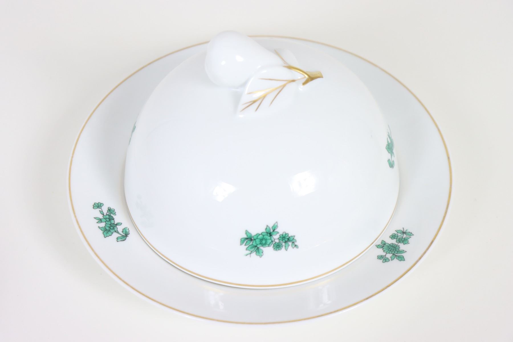 Four-piece set marked 'Made in Portugal' , consists of covered dish, creamer, small bowl and larger bowl.