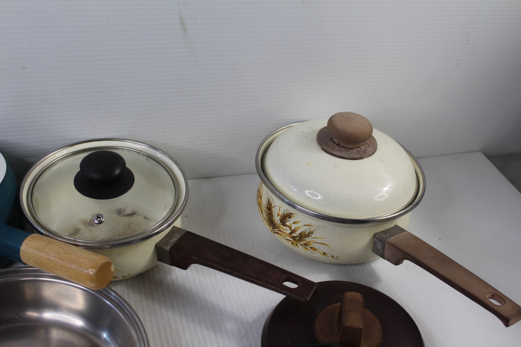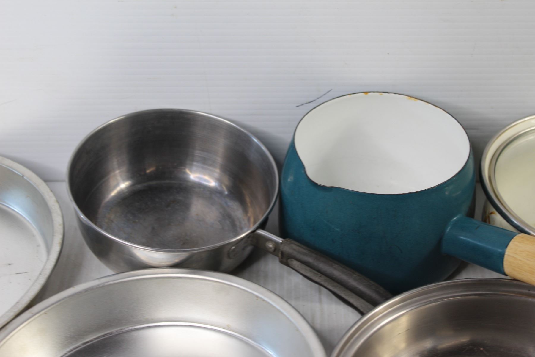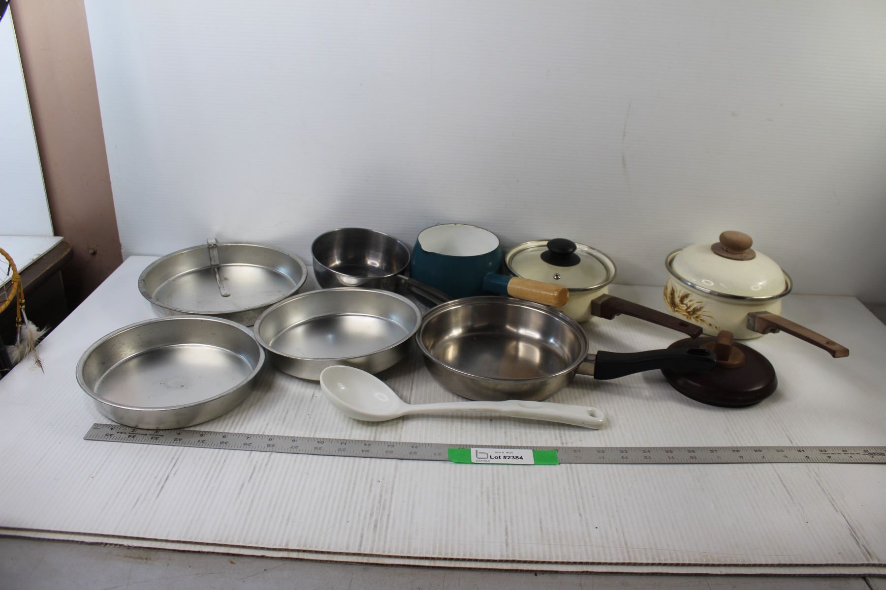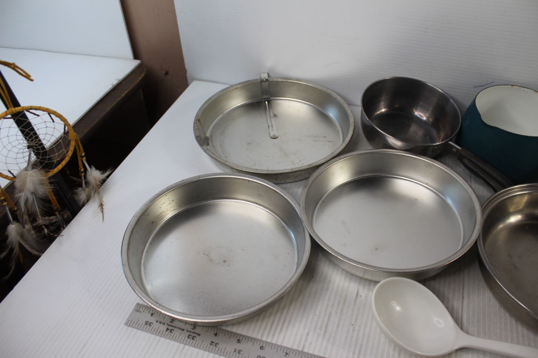 (4) Pots, Pan, (3) Pie Trays, Spoon