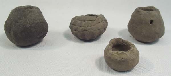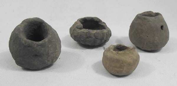 4 Prehistoric Mimbres Child's Pottery. As found condition. The largest measures approx. 1 1/2''H x 1 3/8''W. Some pieces have chips from rim. Acquired in accordance with all state and federal regulations.