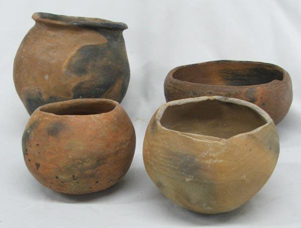 4 Prehistoric Utilitarian Bowls, largest measures approx. 5 3/4''H x 4 1/2''W. SHI $35.