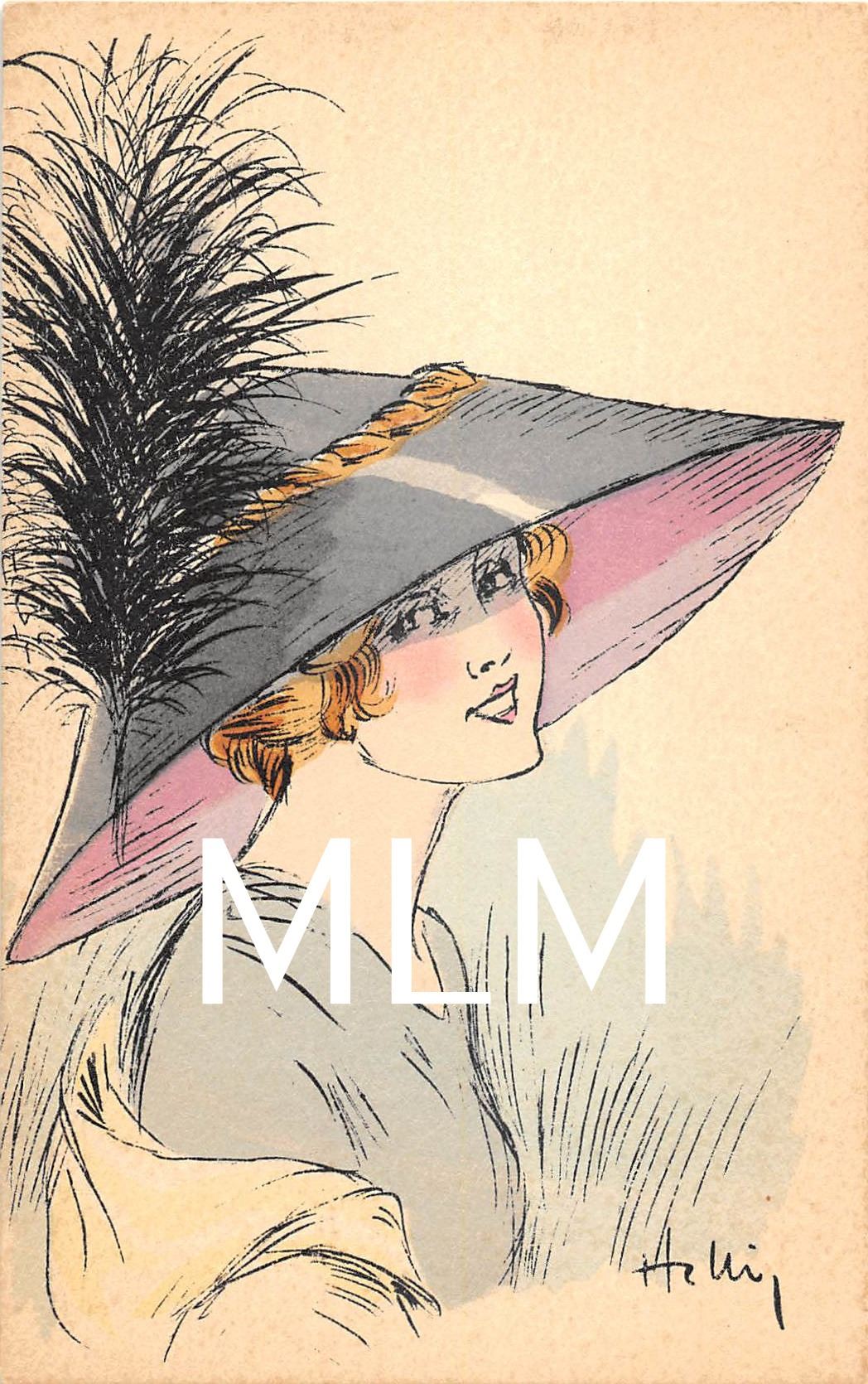 4 Pretty Ladies in Hats Signed Artist Icart Postcards