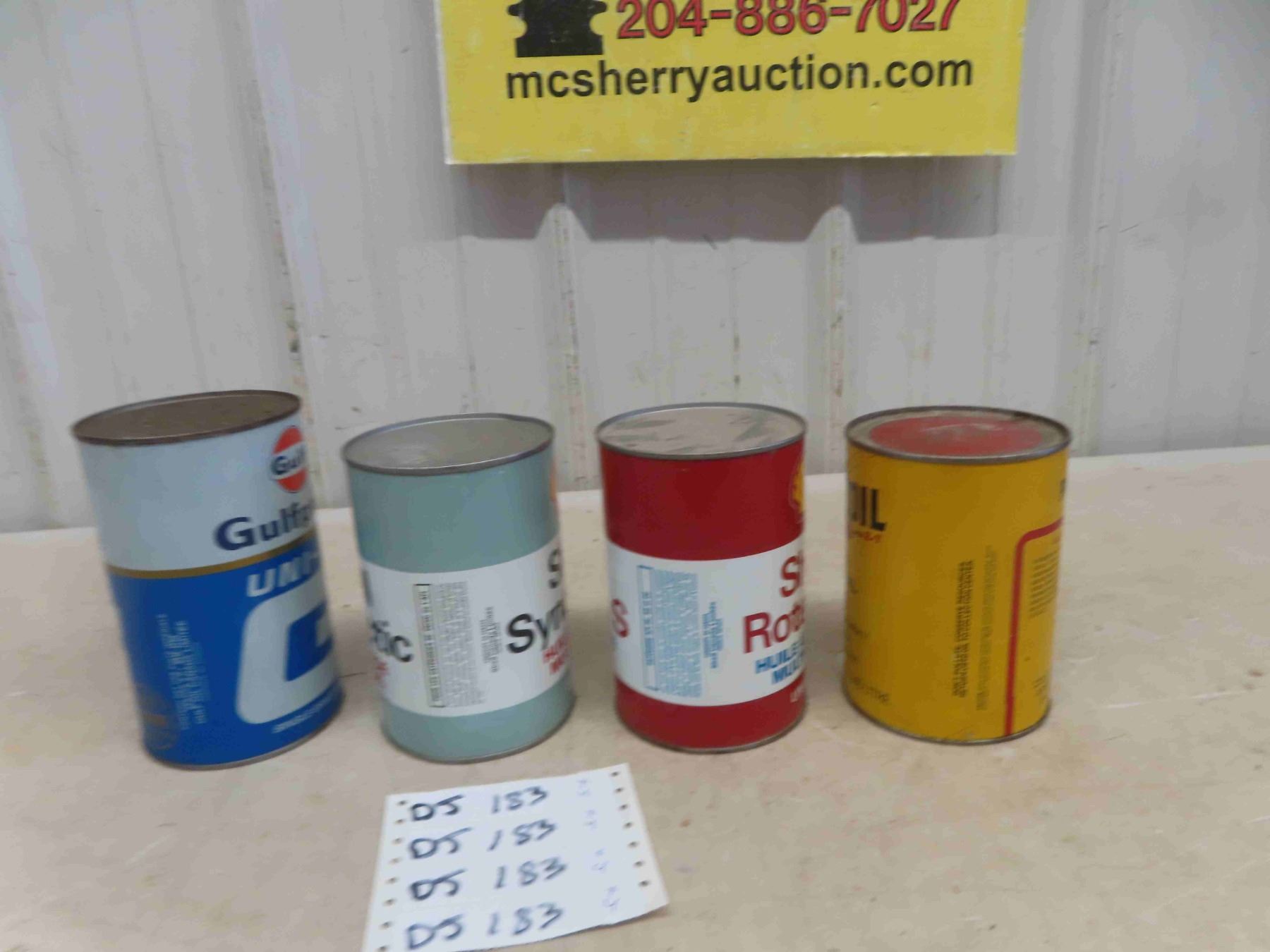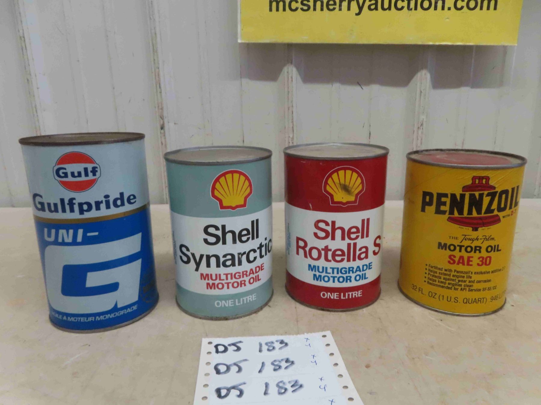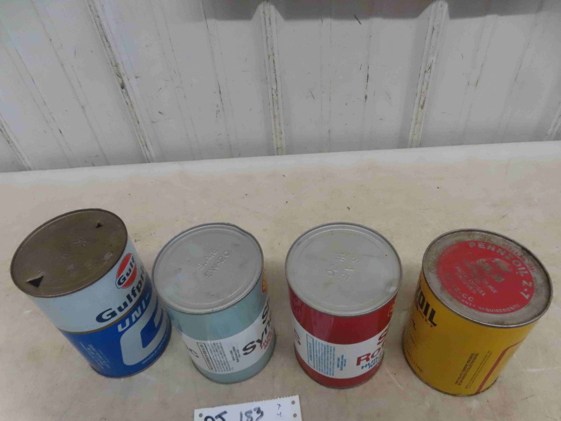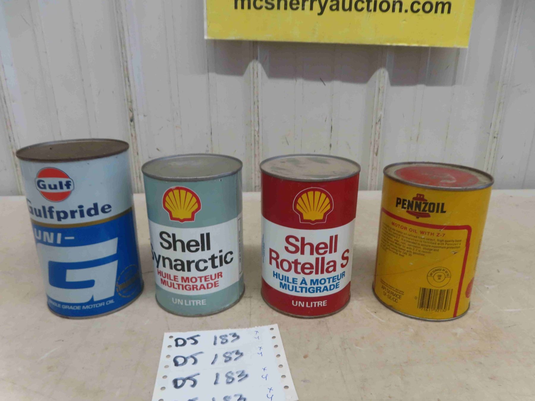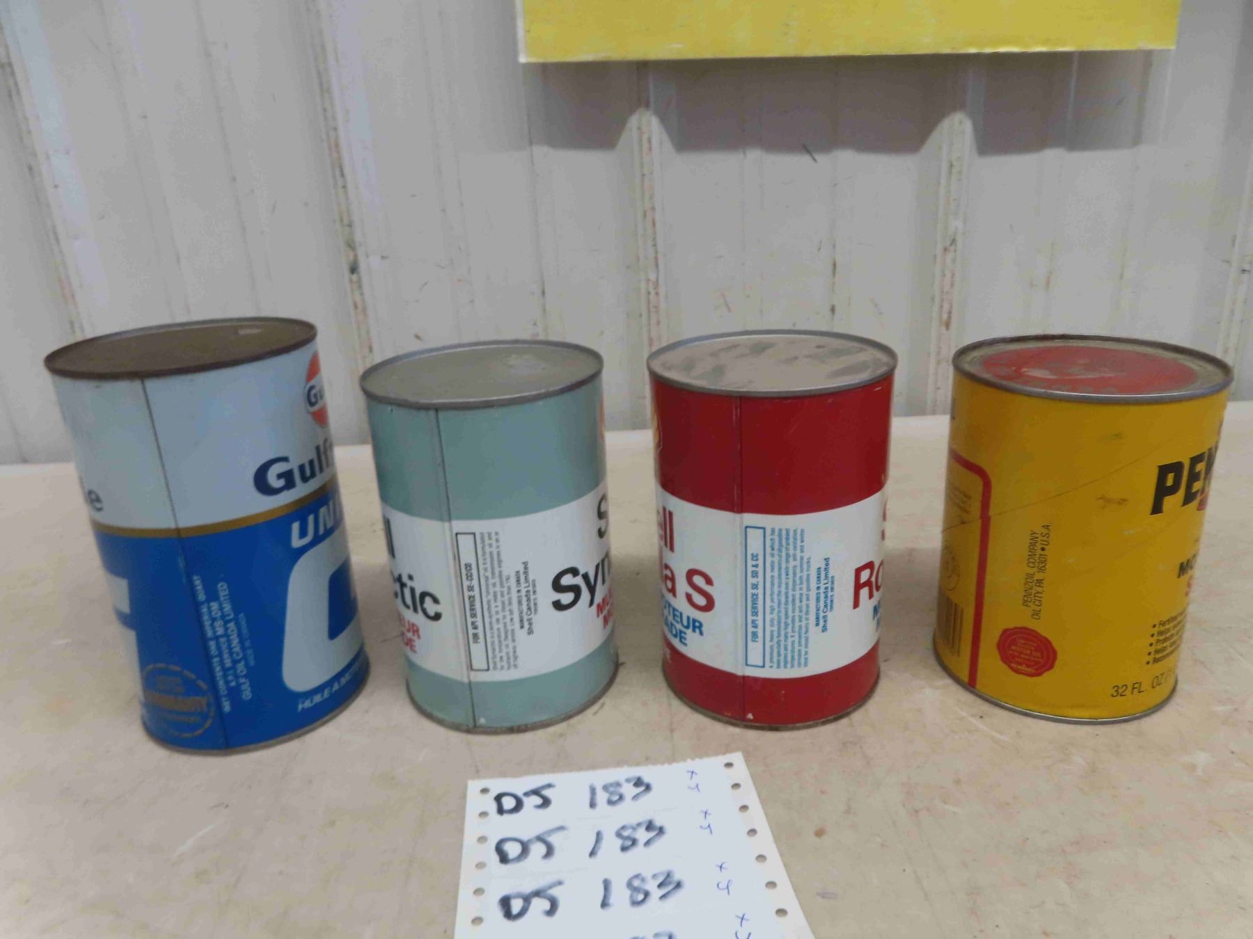 (4) Quartz Oil Cans - 2 Shell + 1 Gulf + 1 Pennzoil , 3 Full of Contents