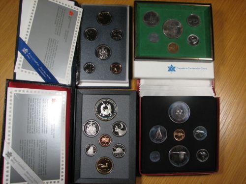 Proof Set 1988 in original packaging, Specimen Set 1989 missing the sleeve, 1867-1967 Specimen Set with Silver medallion (red box) in original packaging, 1867-1967 Centennial Set in Bank of Montreal Box. Lot of 4 sets, sold as is, no return.