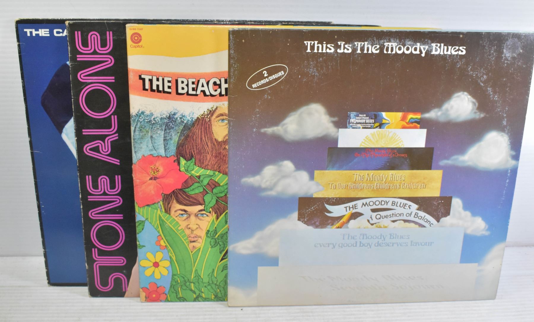 4 ROCK RECORDS MOODY BLUES BEACH BOYS CARS &