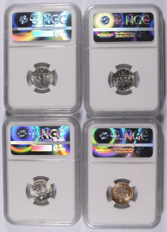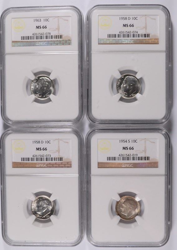 (4) ROOSEVELT DIMES, NGC MS-66: 1954-S, (2) 1958-D & 1963