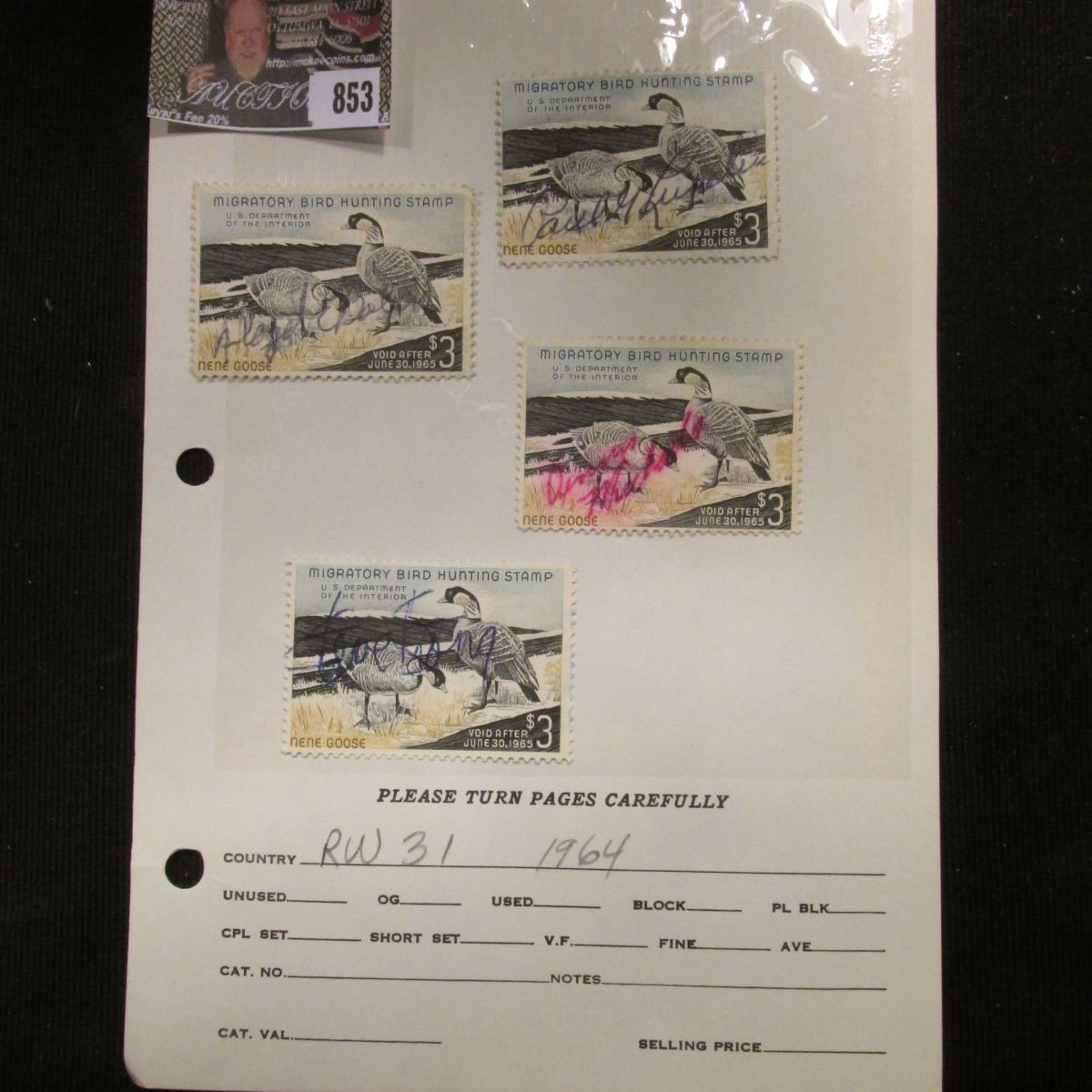 (4) RW31 1964 U.S. Department of Agriculture Migratory Bird Stamps, Fine, signed.