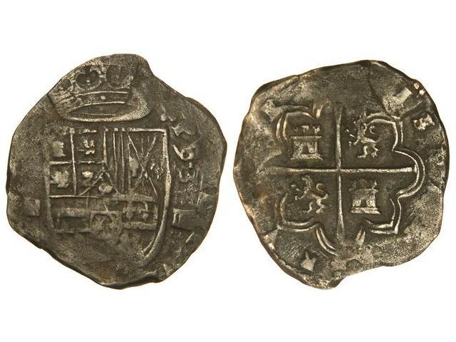 4 Reales. 1593/2. SEGOVIA. (I). Anv.: I (punto encima)/acueducto -escudo- 93/2/IIII (punto encima). 13,50 grs. Pátina oscura. RARA. Cal-360. (MBC).