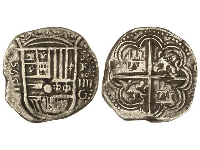 4 Reales. - 1595. - GRANADA. - F. - Anv.: Fecha completa vertical -escudo- F roel encima/¶/G. 13,70 grs. Cal-303. MBC. - -