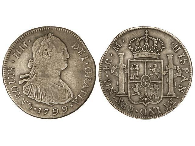 4 Reales. 1799. GUATEMALA. M. 13,26 grs. Pátina. Pequeño final de riel. ESCASA. Cal-790. MBC-.