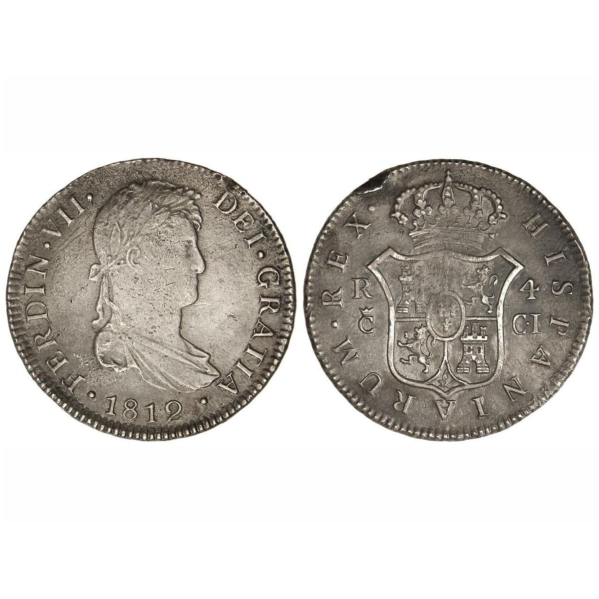 4 Reales. - 1812. - CADIZ. - C.I. - Pátina. Acuñación floja en parte. (Golpe en canto. Pequeños golpectios y rayitas). Cal-703. MBC/MBC+. - -