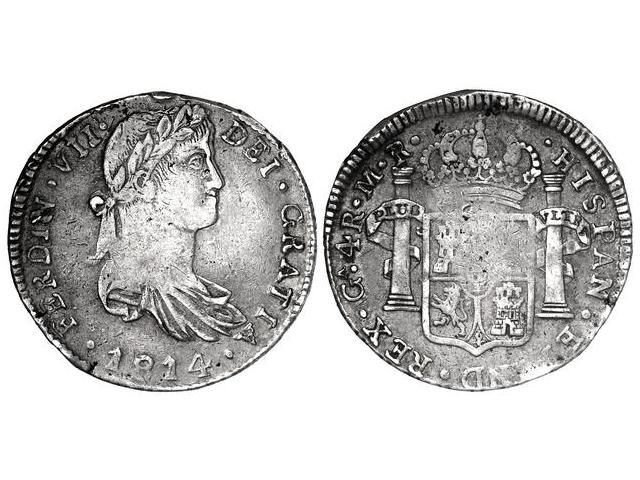 4 Reales. 1814. GUADALAJARA. M.R. (Ha estado colgada. Acuñación floja). Cal-718. (MBC+).
