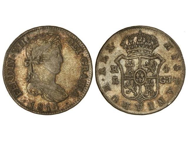 4 Reales. 1814. MADRID. G.J. Busto laureado. Pátina. Cal-754. MBC-/MBC.