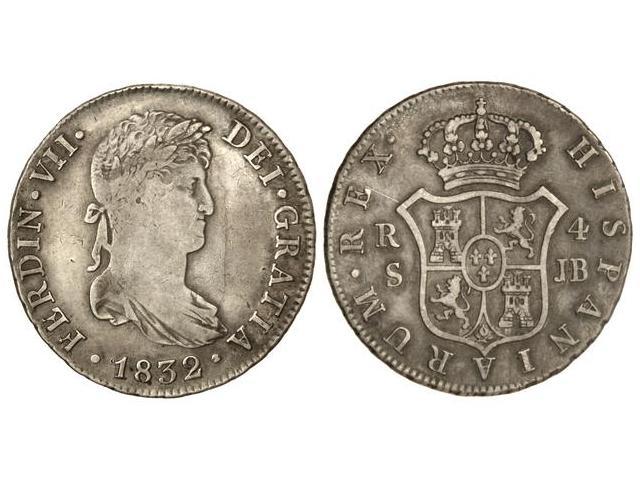 4 Reales. 1832. SEVILLA. J.B. (Rayitas). Cal-820. MBC-/MBC.