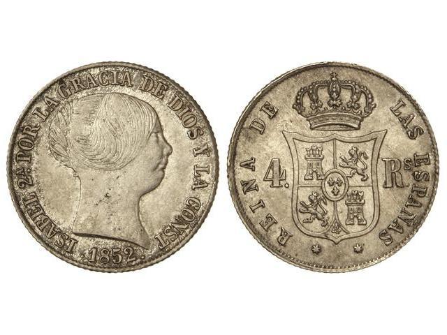 4 Reales. - 1852. - SEVILLA. - Pátina. Cal-323. EBC-/EBC. - -