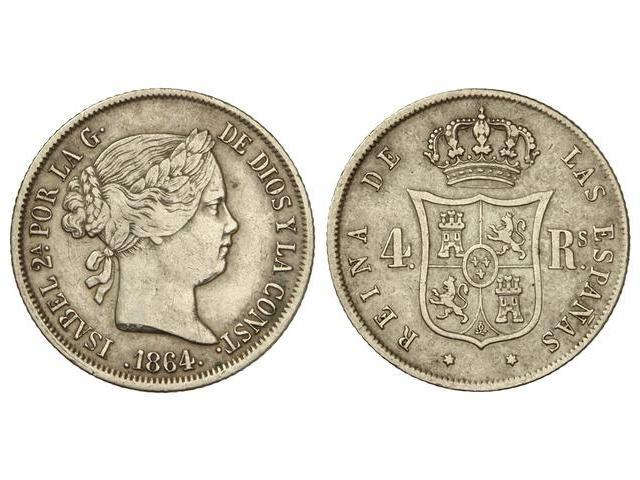4 Reales. 1864. MADRID. (Rayitas en anverso). Cal-310. MBC.