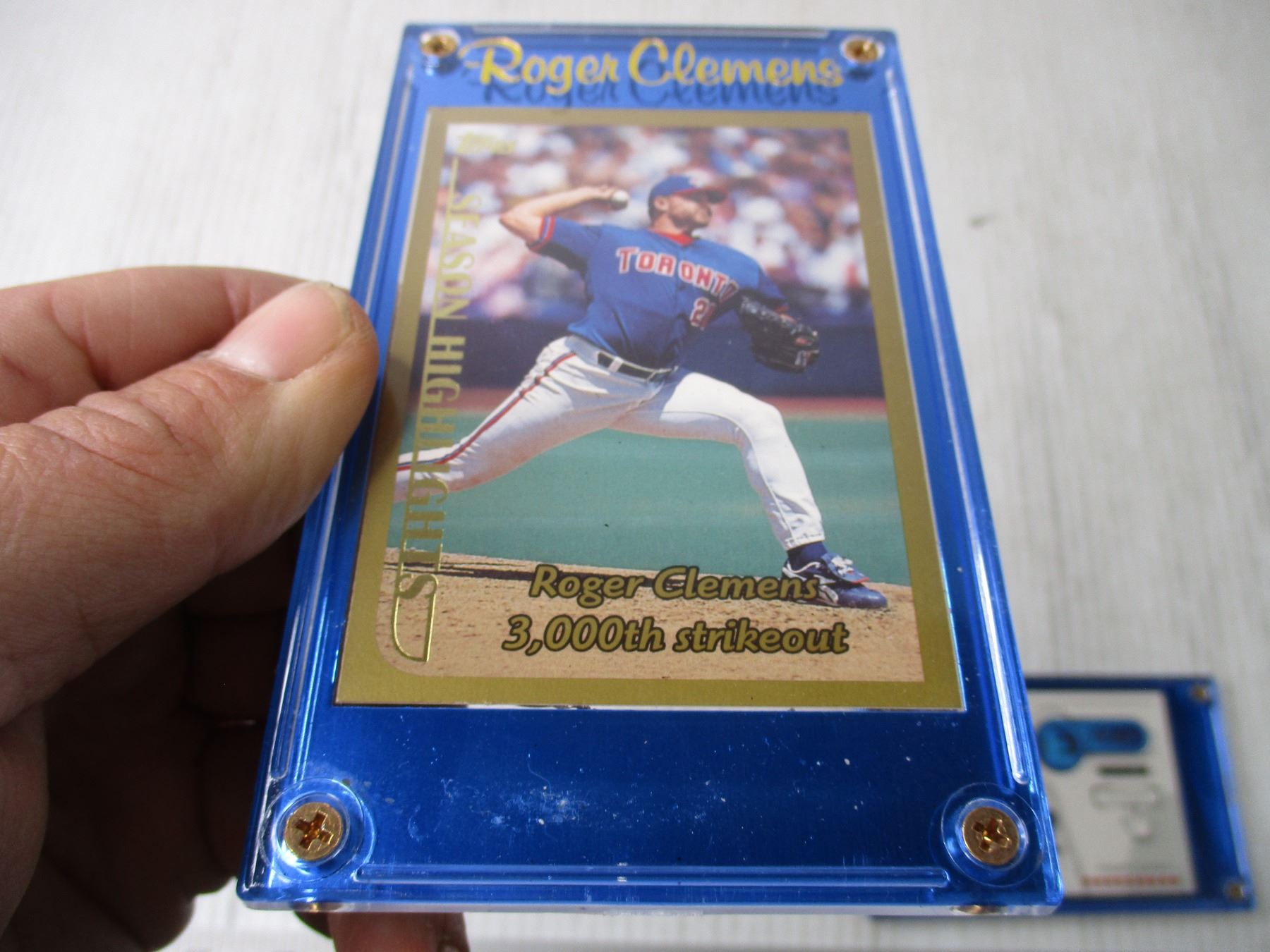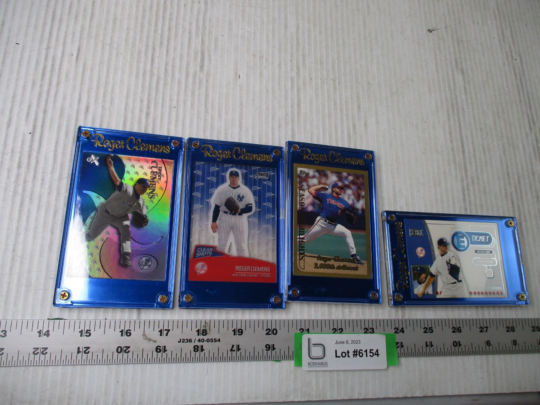 (4) Roger Clemons Baseball Cards in Screw Down Collector Cases