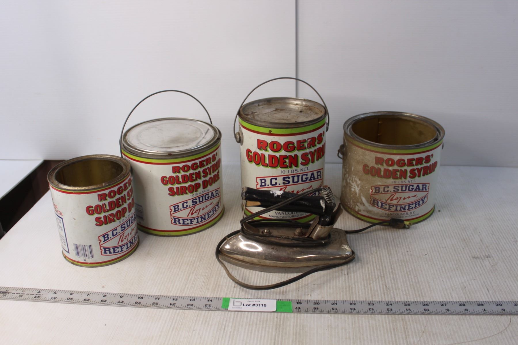 (4) Rogers' Golden Syrup Cans & Vintage Iron