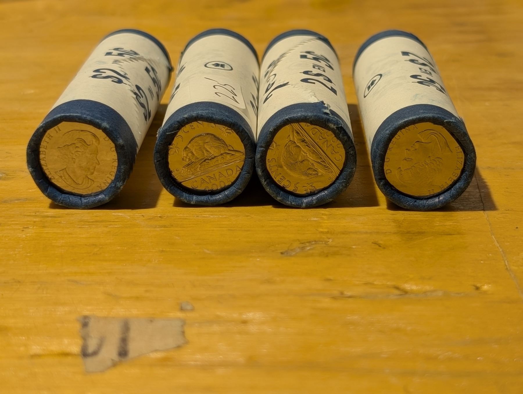 4 Rolls of 2005 5 Cent Canadian BU 1945-2005 "V"