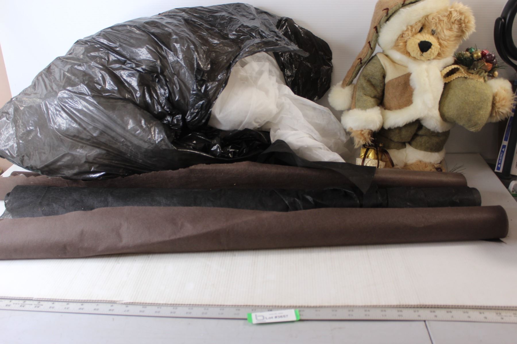 (4) Rolls of Landscaping Fabric, Garbage Bag with Landscaping Fabric, Teddy Bear Christmas Decoration