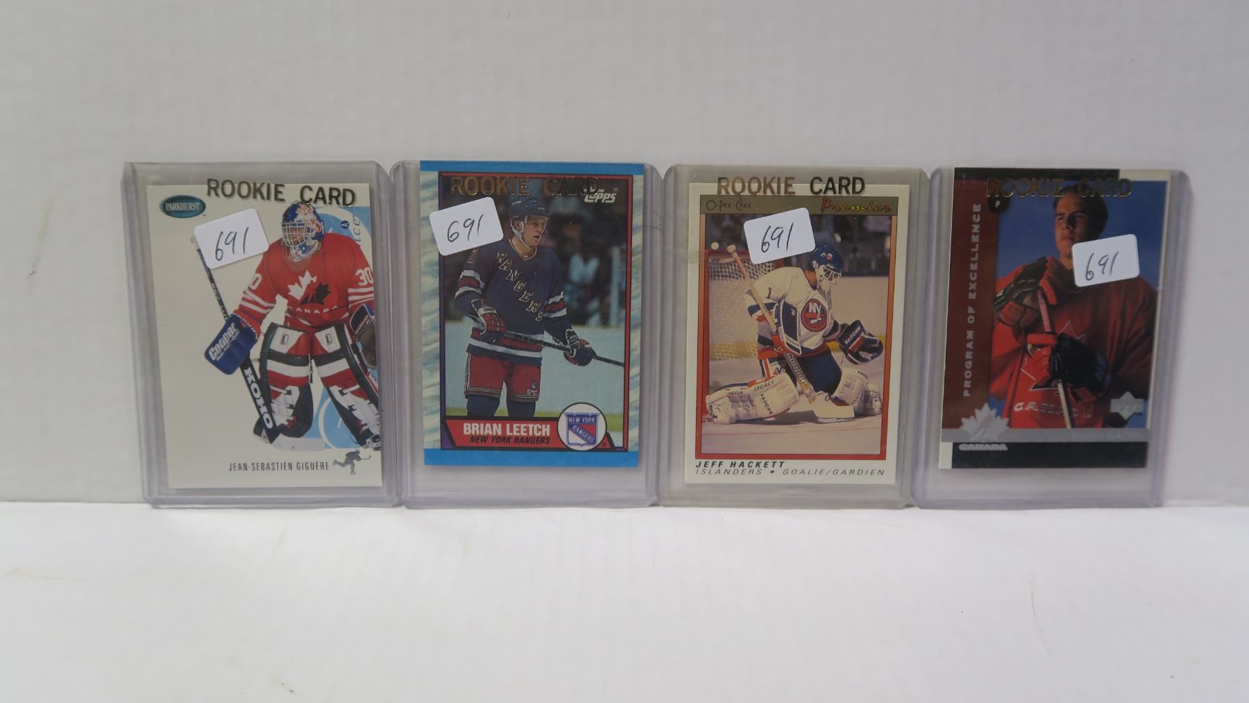4 Rookie cards, Sharp! Gigure, Leetch, Hackett, Gague