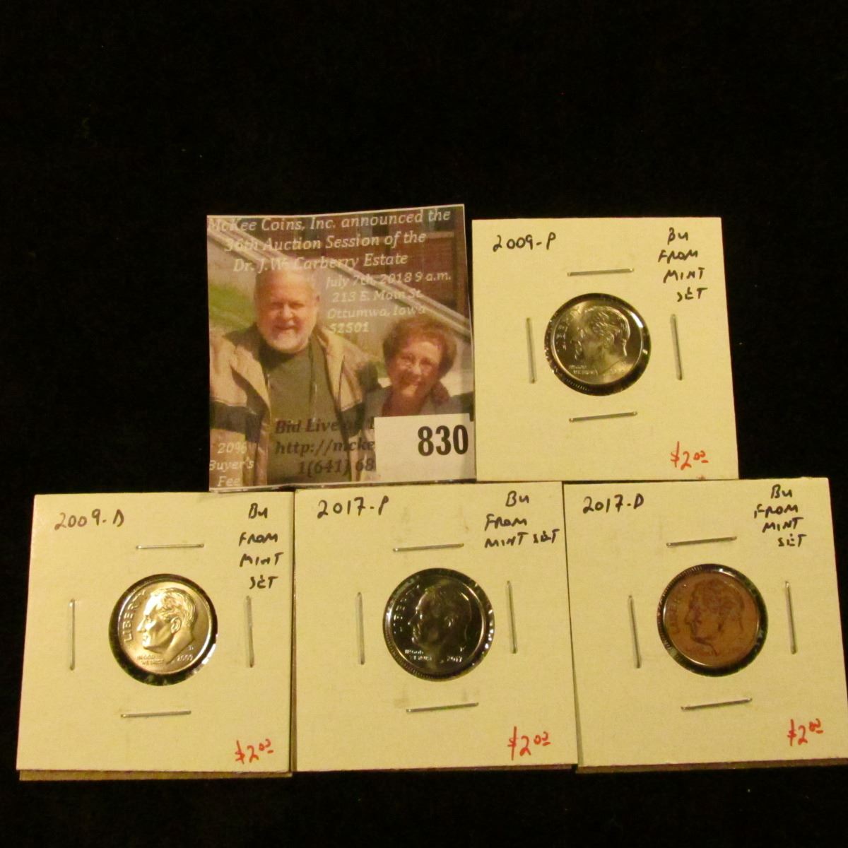 (4) Roosevelt Dimes from Mint Sets, 2009PD & 2017PD, all BU, group value $8