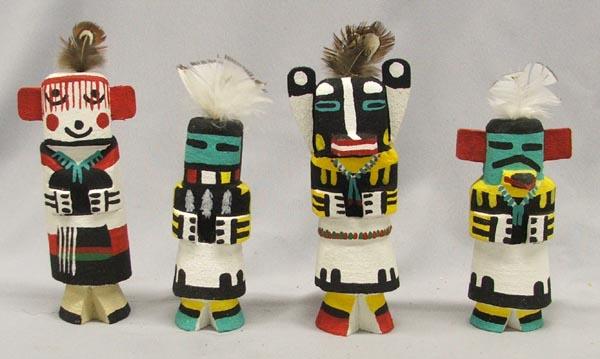 4 Route 66 Kachinas by Pooley. Two kachinas are by G Pooley (deceased artist George Pooley) and two are by L Pooley. The largest is the ''badger'' at 6.25''x2.25''. SHI $25.