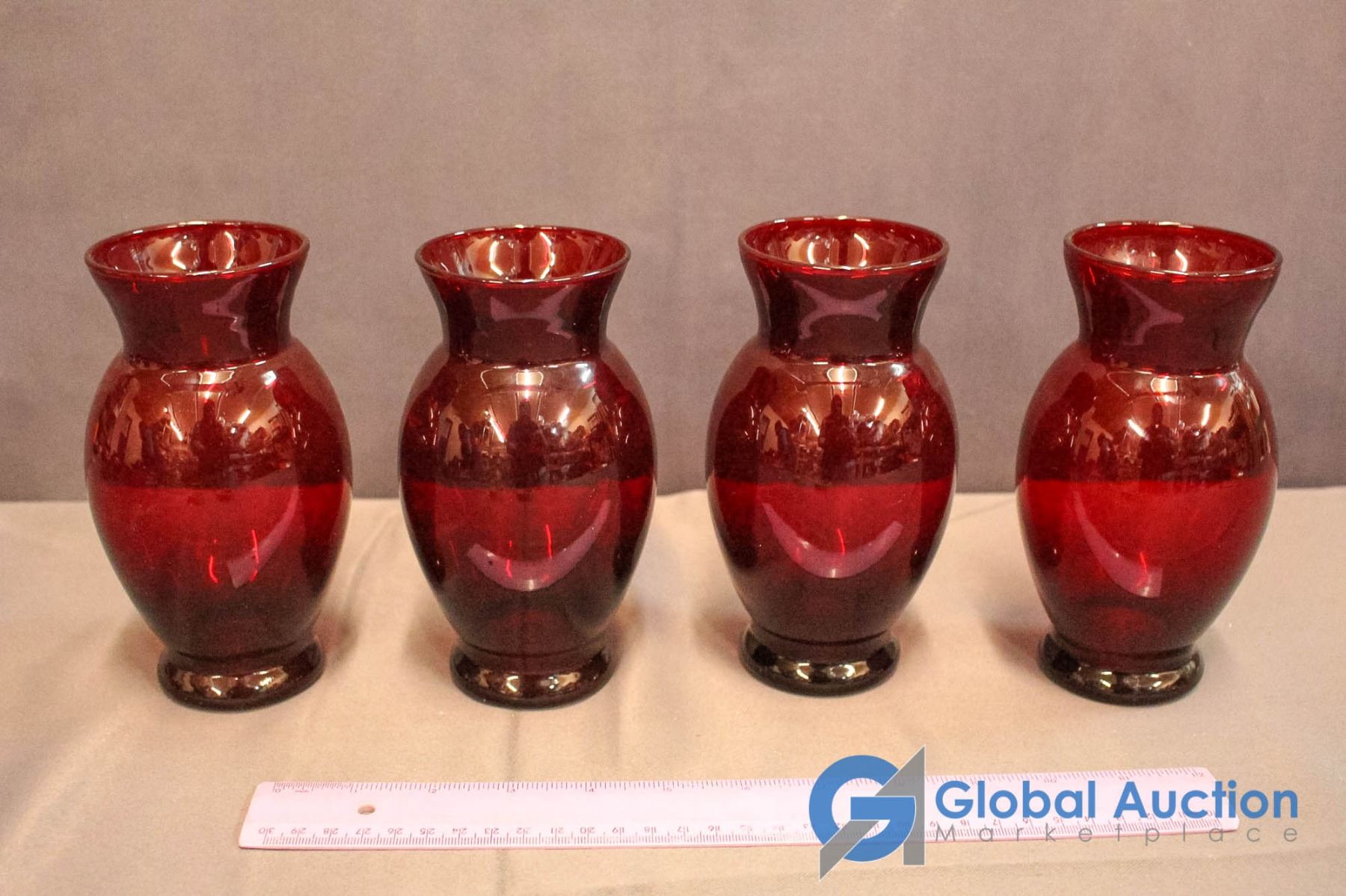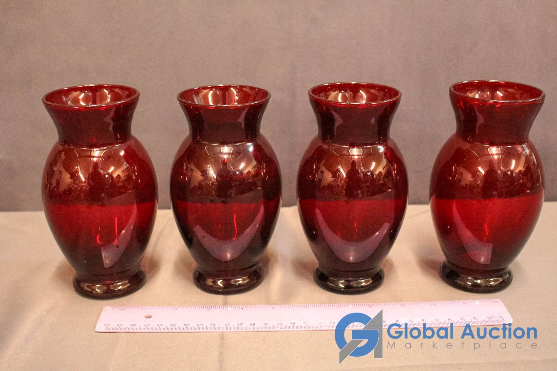 4 Ruby Red Vases