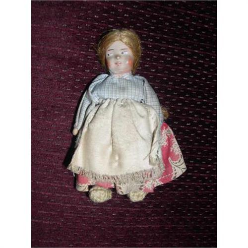 4" Russian Doll with White Apron, Tag says Made in Soviet Union. She unfortunately has composition and paint off the side of her face. What a great wig! Doll comes from a smoke free environment. Buyer to pay $8 for shipping, handling, and insurance. Thanks for viewing.