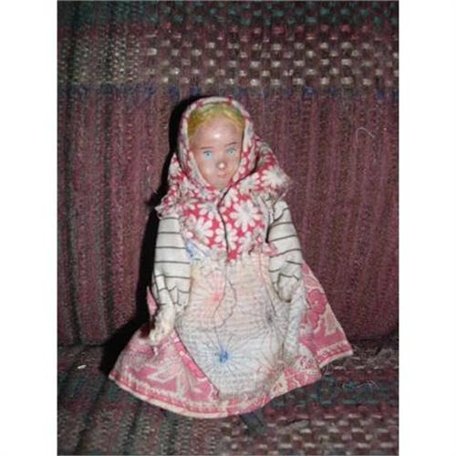 4" Russian Doll with Red print Scarf. She has a composition head and a rub to the tip of her nose. The one hand is coming unwrapped on the very end. She is all original. Doll comes from a smoke free environment. Buyer to pay $8 for shipping, handling, and insurance. Thanks for viewing.