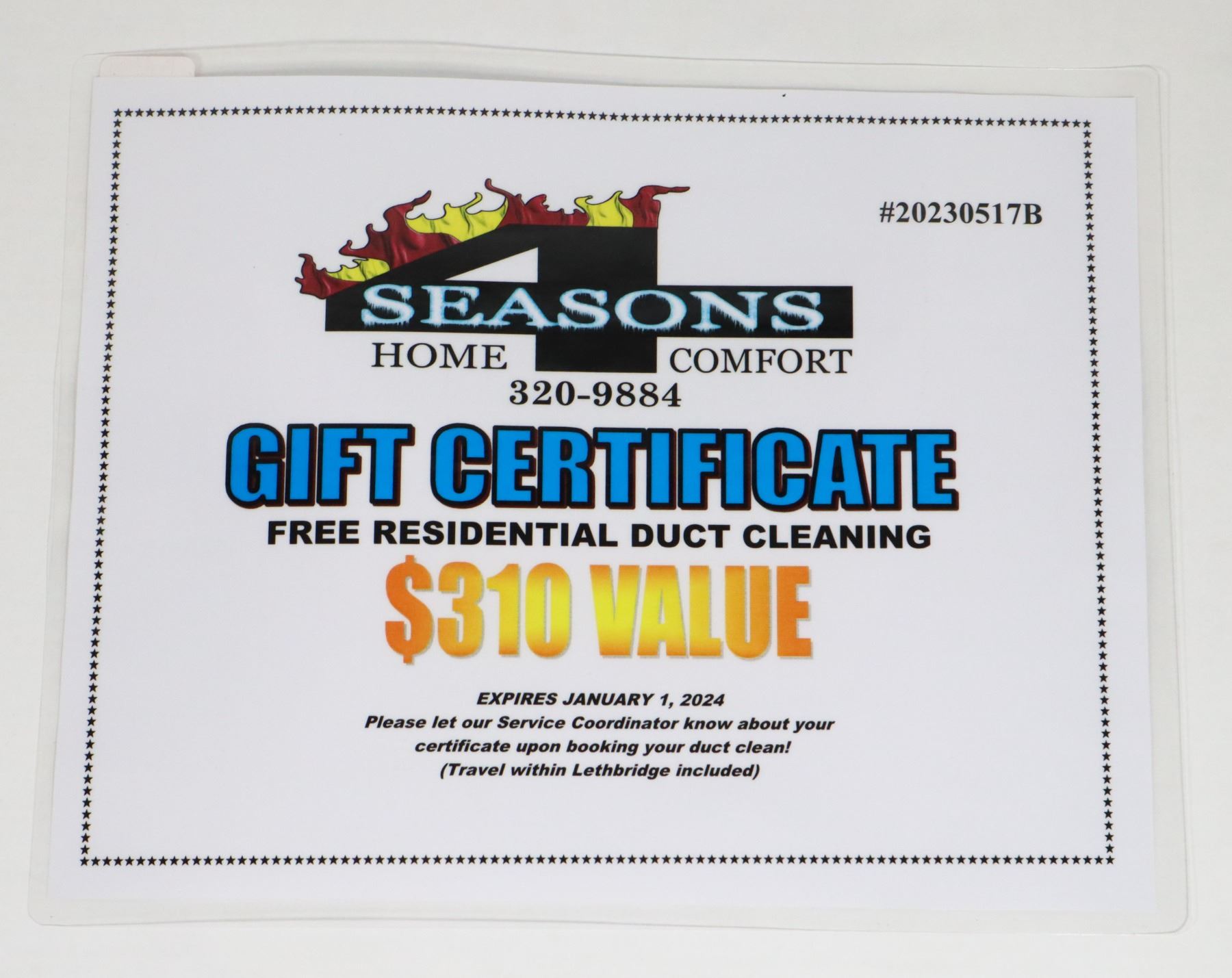 CERTIFICATE, REDEEMABLE FOR FREE RESIDENTIAL DUCT CLEANING. EXPIRES JANUARY 1, 2024. (2/2)