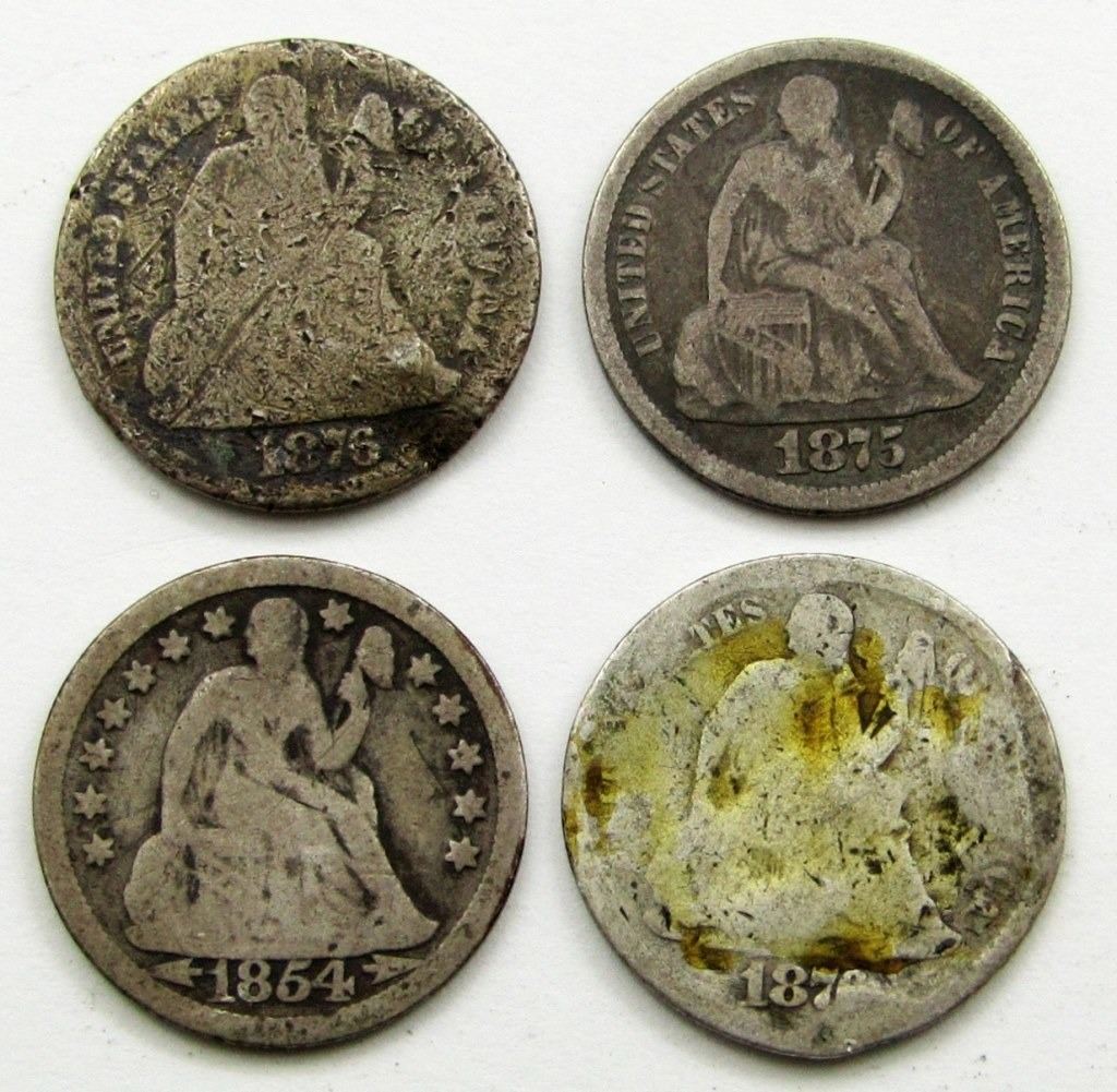 4-SEATED DIMES: 1875, 1876-S, 1876,
