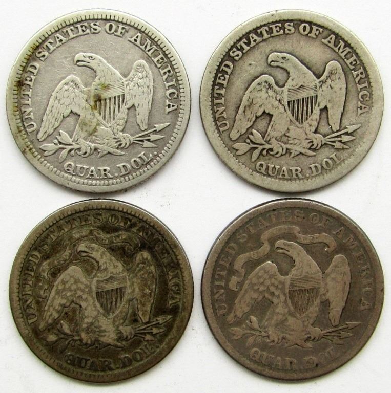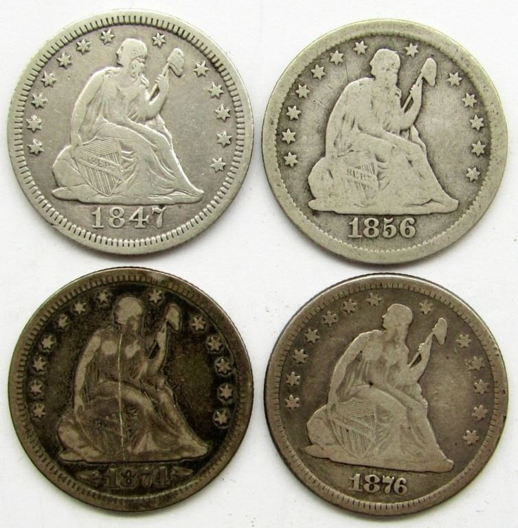 4-SEATED QTRS, 1847, 1856, 1874, 1876