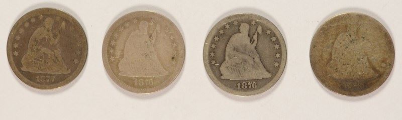 (4) SEATED QUARTERS (1875, 1876, 1876-S, 1877-CC)