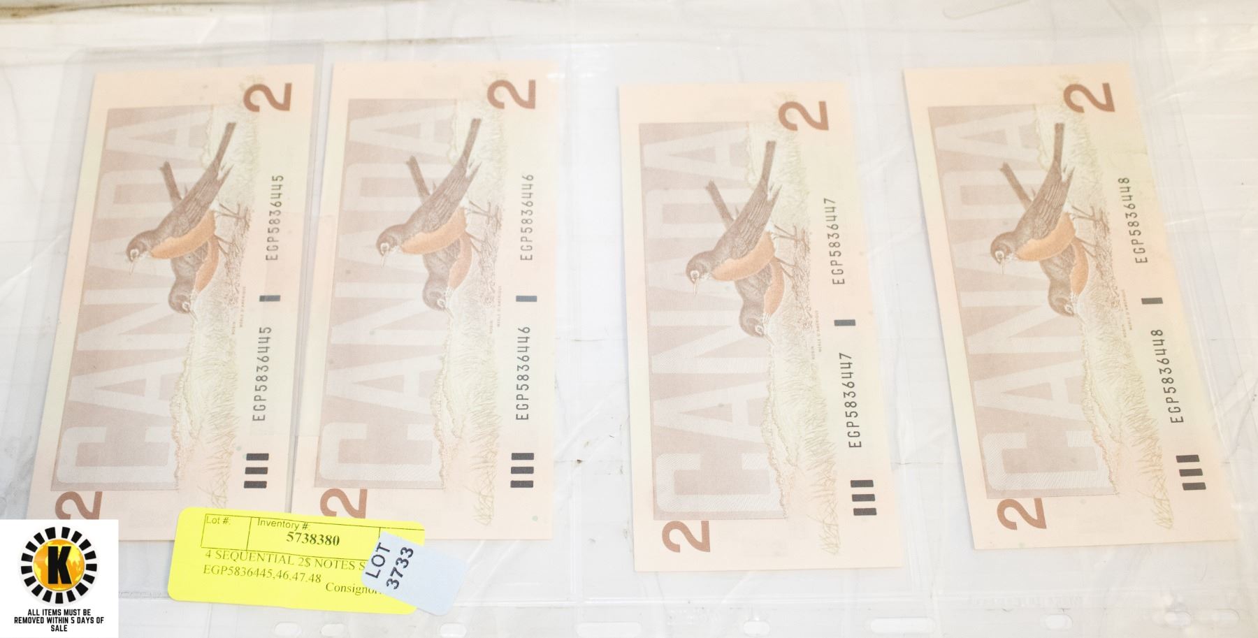 4 SEQUENTIAL 2$ NOTES SE# EGP5836445,46,47.48