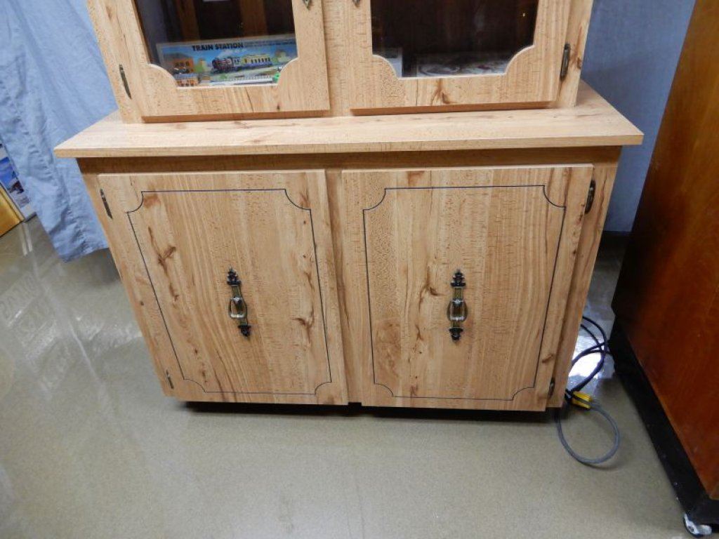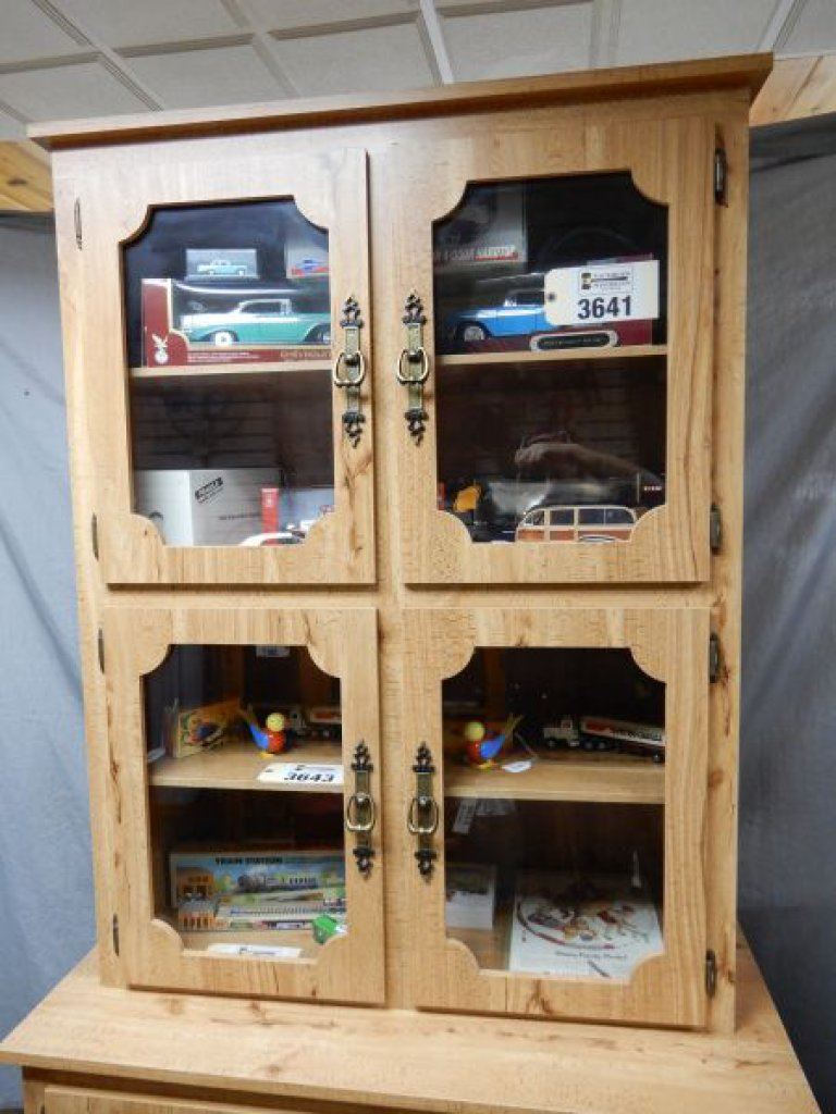 4 SHELF DISPLAY CABINET MDF BOARD - 2 DOOR/2 SHELF ON BOTTOM- 44" X 23" X 84'- CONTENTS NOT INCLUDED LOCATION: LOWER BACKROOM