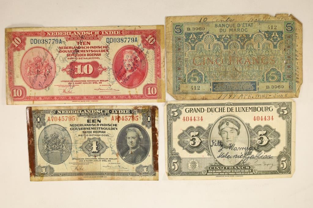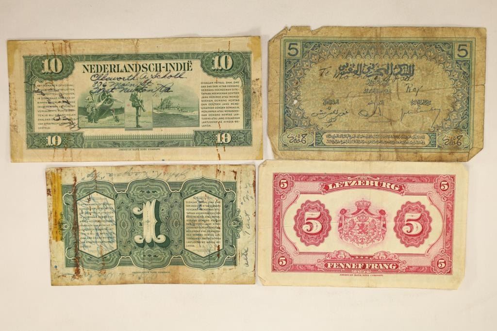 10 GULDEN, LUXEMBOURG 5 FRANCS AND MAROC 5 FRANCS. ALL WITH SIGNATURES. 1 HAS TAPE MARKS