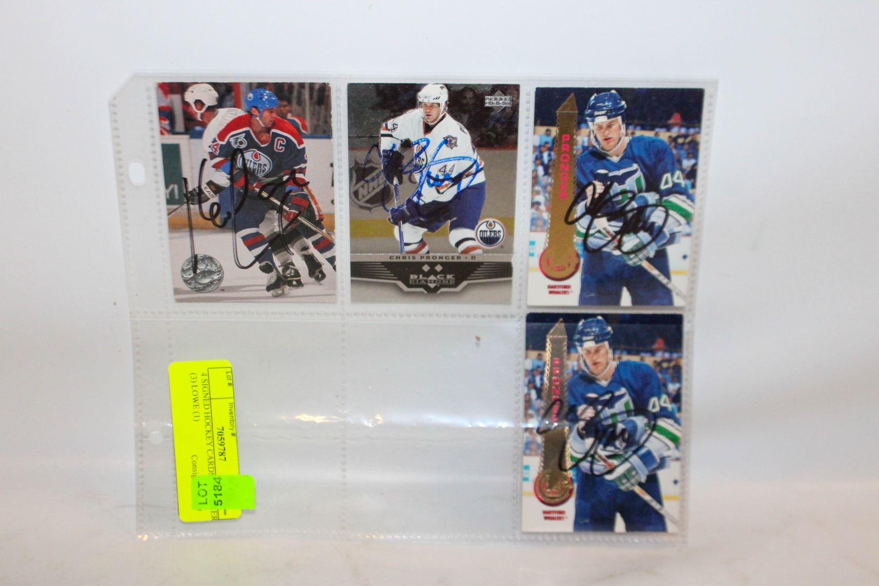 4 SIGNED HOCKEY CARDS; PROGNER (3) LOWE (1)