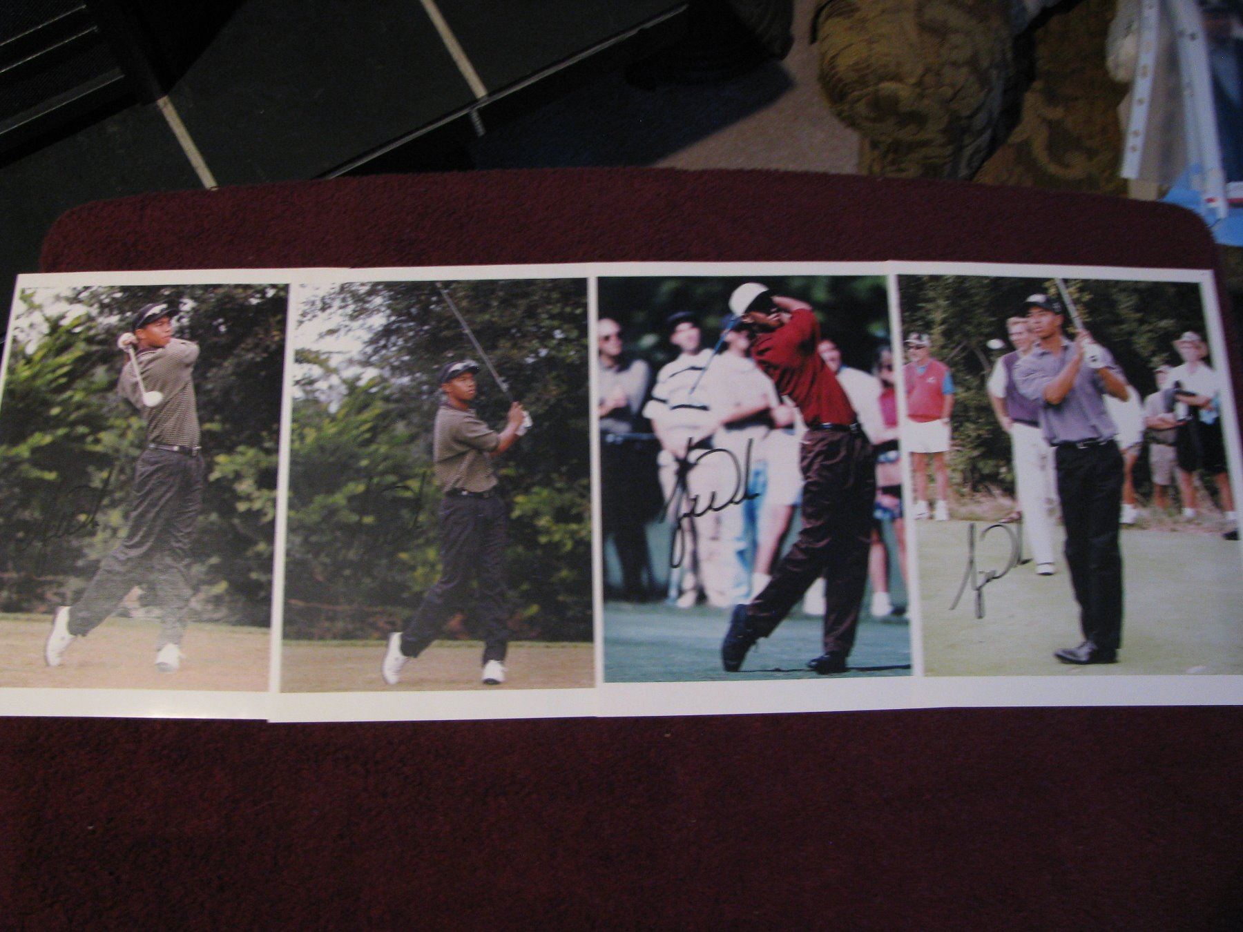 4 SIGNED TIGER WOODS PICTURES EACH 8" X 10"