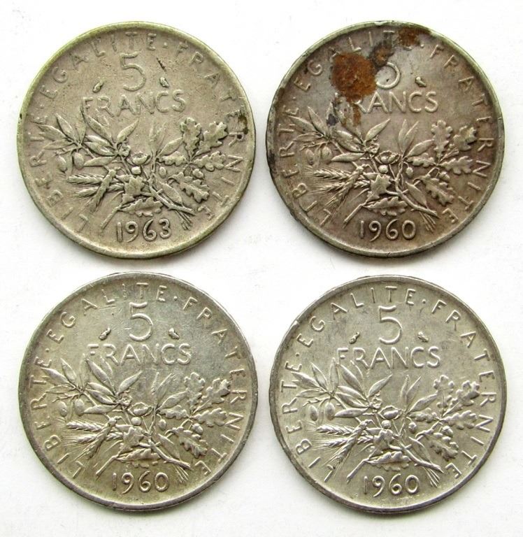 4 - SILVER 5 FRANCS; 3-1960, 1963
