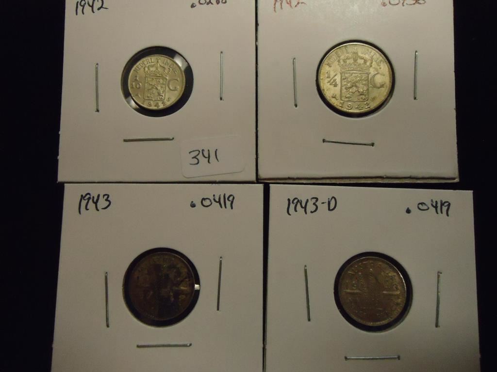NETHERLANDS 1942 1/10 GULDEN AND 1942 1/4 GULDEN, AUSTRALIA 1943 & 1943-D THREE PENCE