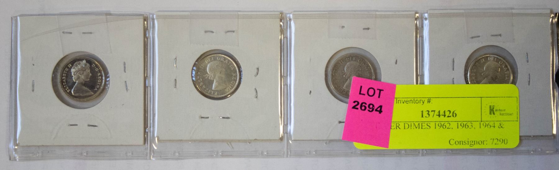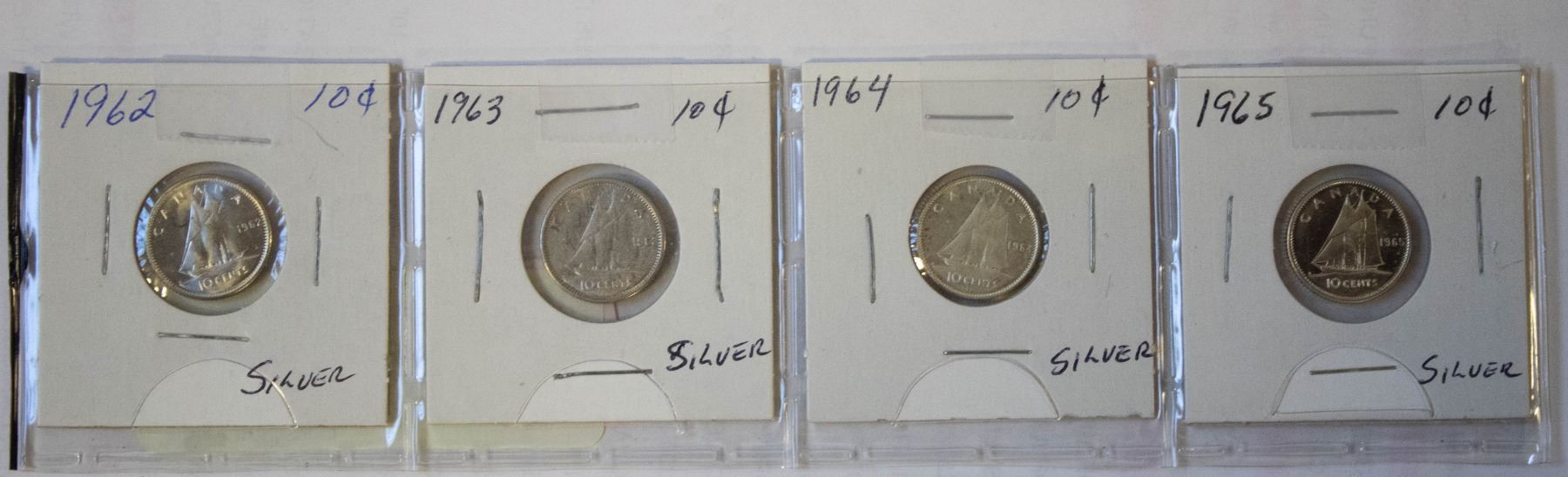 4 SILVER DIMES 1962, 1963, 1964 & 1965