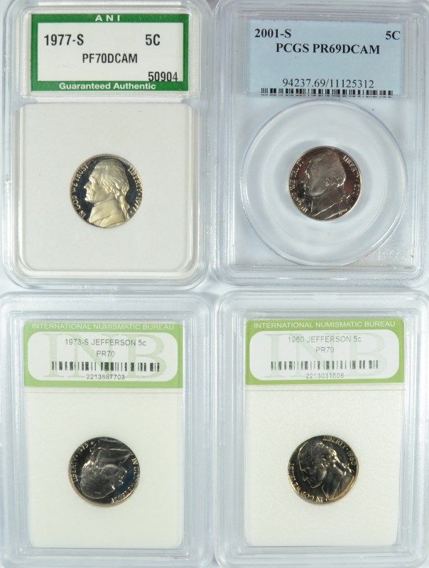 (4) SLABBED PROOF JEFFERSON NICKELS (60, 73-S, 77-S, 01-S)
