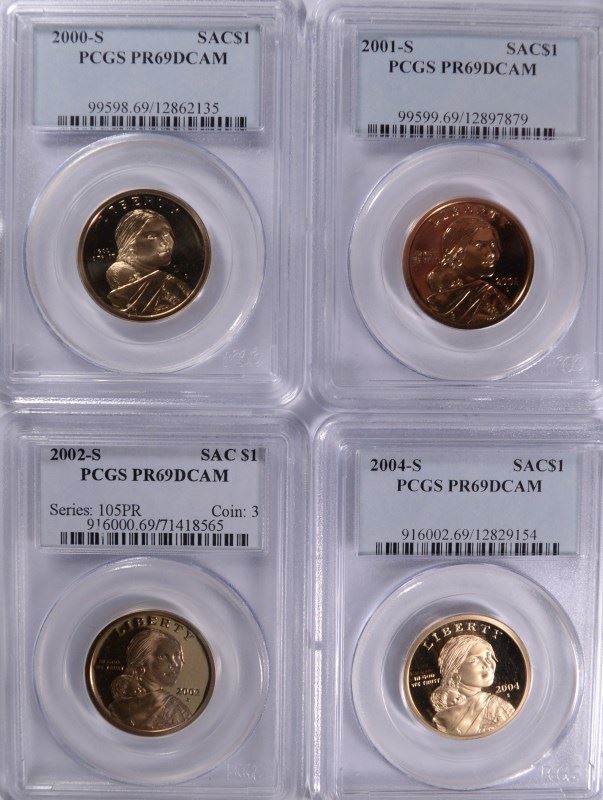 (4) SLABBED PROOF SACAGEWEA DOLLAR'S (00-S, 01-S, 02-S, 04-S) PCGS PR-69'S DCAM